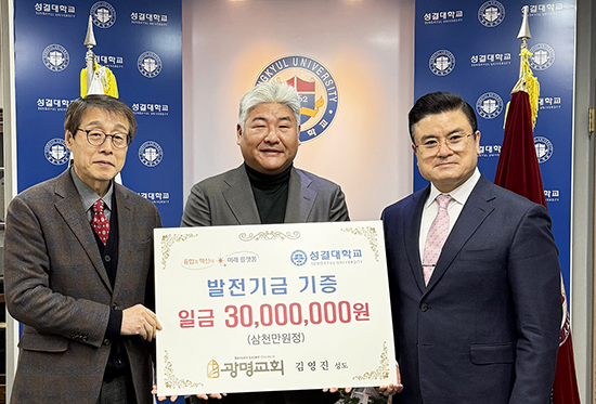 À̹ø ±âºÎ´Â Çб³¹ýÀÎ ¼º°á½ÅÇпø ±è¼ºÁø ÀÌ»çÀåÁ÷¹«´ëÇàÀÌ ´ãÀÓ¸ñ»ç·Î ½Ã¹«ÁßÀÎ ±¤¸í±³È¸ ¼ºµµÀÎ ¹Ì·¡¿£ ±è¿µÁø ȸÀå°ú ¼ºµµµéÀÌ ¹Ì·¡¸¦ ÇÔ²² ¼¼¿ì°íÀÚ ÇÏ´Â ¶æÀ» ´ã¾Æ ÁøÇàµÈ ¶æ±íÀº ³ª´®À¸·Î ÀüÇØÁ³´Ù. ±³È¸¿Í ´ëÇÐ, ±â¾÷ÀÌ ½Å¾Ó°ú ±³À°À̶ó´Â °øÅëÀÇ °¡Ä¡¸¦ Áß½ÉÀ¸·Î ¿¬°áµÇ¸ç, ´ÙÀ½ ¼¼´ë¸¦ À§ÇÑ Ã¥ÀÓ ÀÖ´Â ³ª´®À¸·Î À̾îÁ³´Ù´Â Á¡¿¡¼ Àǹ̸¦ ´õÇϰí ÀÖ´Ù.