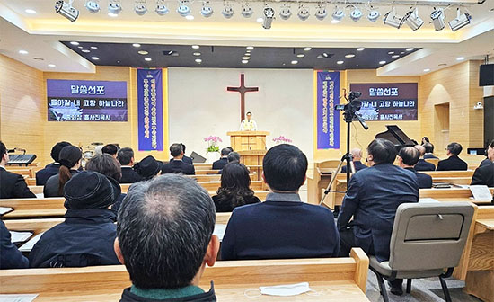 Áö³ 2¿ù 8ÀÏ ¿î¾ç±³È¸¿¡¼ µå·ÁÁø õ±¹È¯¼Û¿¹¹è´Â ÀÌ»óÈ ¸ñ»çÀÇ »çȸ·Î ½ÃÀÛÇÏ¿© ÃÑȸÀå È«»çÁø ¸ñ»ç°¡ ¡®µ¹¾Æ°¥ ³» °íÇâ Çϴóª¶ó¡¯(È÷ 11:13~16)¶ó´Â Á¦¸ñÀ¸·Î ¸»¾¸À» ÀüÇß´Ù. ÀÌ¾î ¾à·Âº¸°í¿Í Á¶»ç, Ã൵ ¼ø¼°¡ À̾îÁ³´Ù. ÇÑÆí À̳¯ µå¸° ¿¹¹è¿Í´Â º°µµ·Î Àüü Àå·Ê ÀýÂ÷´Â °íÀÎÀÇ ºó¼Ò°¡ ¸¶·ÃµÈ ¹Ì±¹¿¡¼ ÁøÇàµÆ´Ù. ±³È¸´Â 2¿ù 4ÀϺÎÅÍ 8ÀϱîÁö ¾Öµµ ±â°£À¸·Î Á¤ÇßÀ¸¸ç, À¯°¡Á·À¸·Î´Â ¹è¿ìÀÚ Á¤°æÀÚ »ç¸ð¿Í 4³à 1³²ÀÇ ÀÚ³àµéÀÌ ÀÖ´Ù.