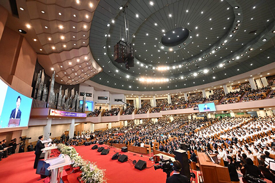 ¿¹¹è´Â ´ëȸÀå ÀÌ¿µÈÆ ¸ñ»çÀÇ ´ëȸ»ç·Î ¹®À» ¿¾ú´Ù. ÀÌ ¸ñ»ç´Â ¡°ºÎȰÀº ¿À´ÃÀ» »ì¾Æ°¡´Â ¿ì¸®¿¡°Ô »õ·Î¿î »ý¸í°ú ´Ù½Ã ÀϾ ÈûÀ» Áֽô »ì¾ÆÀÖ´Â Áø¸®¡±¶ó¸é¼ ¡°Çѱ¹±³È¸°¡ ±¹¹Î ´ëÅëÇÕ¿¡ ¾ÕÀå¼¸ç »çȸÀû ¾àÀÚ¸¦ ¼¶±â´Â ÀÏ¿¡ ÃÖ¼±À» ´ÙÇÔÀ¸·Î ÀÌ ½Ã´ë ¼Ó¿¡¼ Èñ¸ÁÀÇ ºûÀÌ µÇ°í »ç¶ûÀ» ½ÇõÇÏ´Â °øµ¿Ã¼·Î ¼¼¿öÁö±â¸¦ ±âµµÇÑ´Ù¡±°í ¼±Æ÷Çß´Ù.